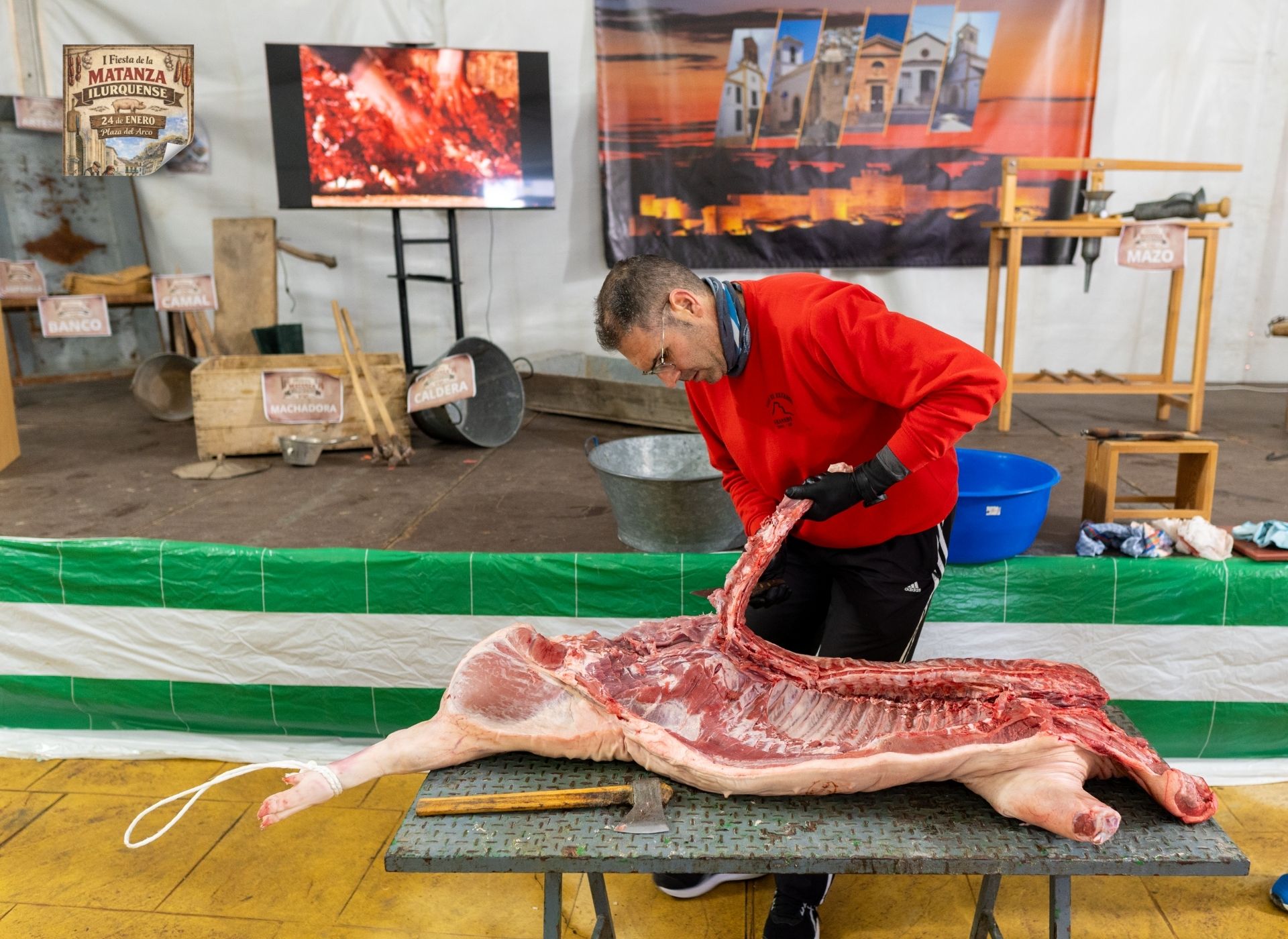 Desde primera hora de la mañana, la carpa municipal instalada por el Ayuntamiento se llenó de actividad. El día arrancó con un desayuno popular y, a continuación, comenzó el proceso tradicional de la matanza, en el que los participantes elaboraron de manera artesanal productos tan representativos como la morcilla, el condumio, el lomo y otros derivados. Todo se hizo siguiendo las recetas de siempre, esas que han pasado de generación en generación y forman parte del saber popular del municipio.